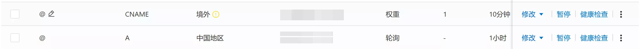 然后,添加一条 CNAME 记录,来源选择境外地区,填入之前 cf 解析的域名。