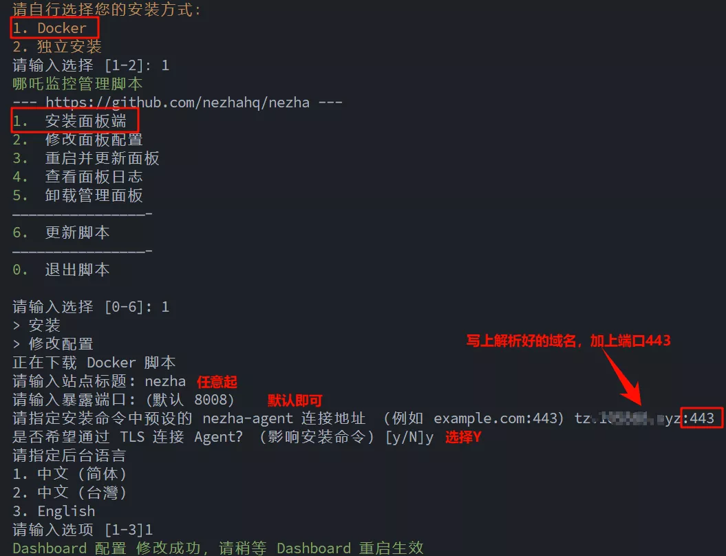 curl -L https://raw.githubusercontent.com/nezhahq/scripts/refs/heads/main/install.sh -o nezha.sh && chmod +x nezha.sh && sudo ./nezha.sh接下来照图片操作所示: