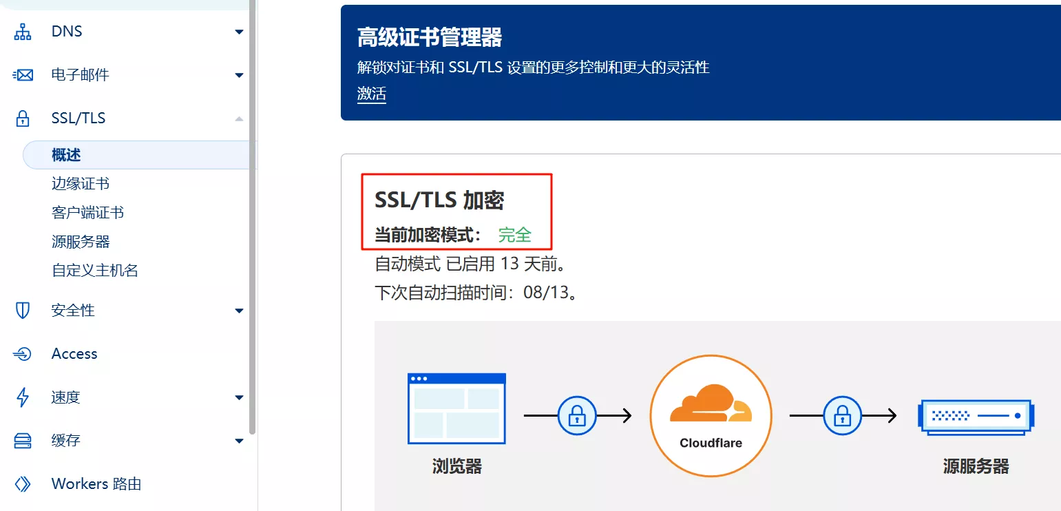 首先需要将下面 ssl/tls 加密更改为: 完全