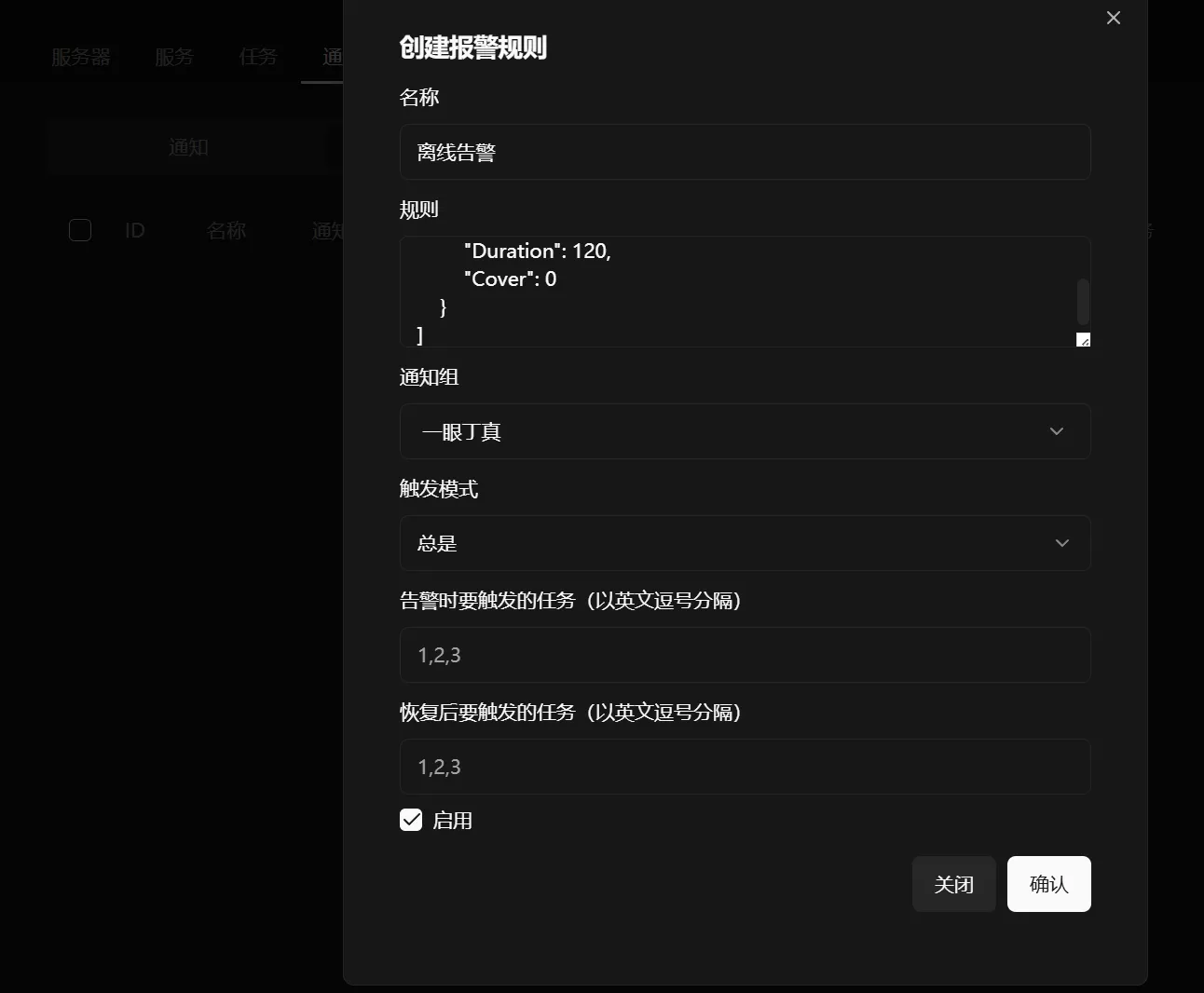 - 创建离线告警规则